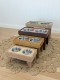 Each stand is hand made to order with reclaimed Tasmanian oak legs and frame and a ply-wood inset that can be customised with a feature colour or matching timber stain. Our frames are sealed with a matt sealant to protect them from water and food and the ply wood inset is painted and sealed twice prior to being fixed into the frame.